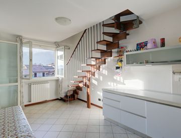 Al piano superiore, collegato da scala interna, si trova un'ulteriore camera da letto con doppi lucernai, che garantiscono ottima luminosità naturale.