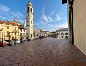 Le due camere da letto matrimoniali garantiscono un riposo sereno, accompagnate da un bagno padronale con doccia e un secondo bagno con vasca. Ma il vero punto forte sono i due mega terrazzi: uno di 60 mq esposto a sud, perfetto per godere del sole, e l'altro di 30 mq con affaccio sulla piazza.