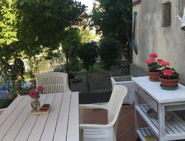 vendesi alloggio con giardino in ottima posizione comoda, composto da cucinino, soggiorno, camera da letto, bagno e cantina.