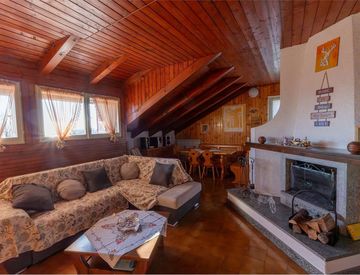 L'appartamento di circa 78 mq è composto da ampia zona giorno con soggiorno e camino, zona pranzo e cucina a vista, due camere da letto, bagno e ampio e soleggiato balcone, ideale per momenti di relax all'aperto.