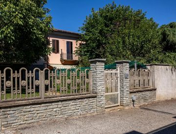 La casa si sviluppa su tre livelli ed è circondata da un cortile interno e da un giardino privato di circa 110 mq, ideali per godersi momenti all’aperto.