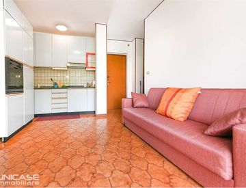 L'immobile è formato da un unico ambiente già arredato di angolo cottura, tavolo e divano letto. Il piccolo antibagno con lavatrice consente l'accesso al bagno, completo di vasca e finestra.