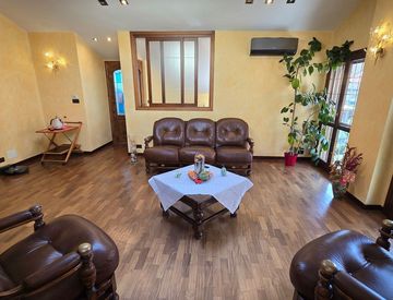 Ampio soggiorno doppio con due porte - finestre sul giardino