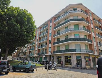 Nel pieno centro della città, in stabile realizzato negli anni '60 fronte Municipio che affaccia direttamente sulla principale piazza di Nichelino, appartamento luminoso con doppia esposizione al piano alto e panoramico.