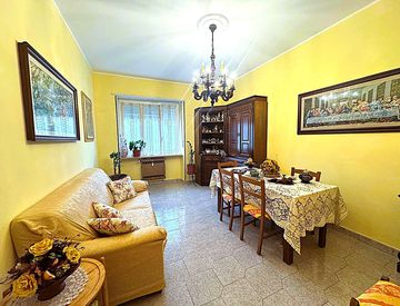 L'alloggio è composto da ingresso, tinello con cucinino, tre camere ben squadrate e bagno dotato di vasca e finestra. Conclude il piano un pratico ripostiglio.