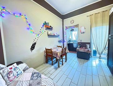 Internamente è in ottime condizioni, è stato completamente ristrutturato nel 2018: portoncino blindato con doppia serratura; infissi in PVC doppio vetro con apertura vasistas; pavimentazione in gres porcellanato e impianto elettrico rivisto.
