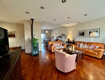 In palazzina di soli tre piani proponiamo in vendita luminoso e panoramico alloggio al piano 3° ed ultimo composto da ingresso su soggiorno con ampia zona pranzo e stufa a pellet, cucina abitabile, disimpegno, due camere da letto, due bagni, lavanderia, quattro balconi, cantina e due autorimesse.