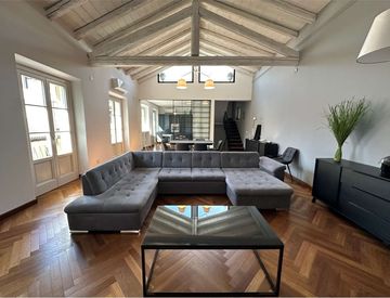 La soluzione, che presenta finiture di alta qualità, pavimenti in parquet e soffitti con travi a vista ed è così composta; al secondo piano ingresso su ampio e luminoso soggiorno con sala da pranzo, cucina a vista abitabile, bagno, balcone e terrazzo.