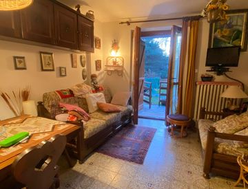 Appartamento immerso nel verde di un ampio giardino condominiale che gode di giardino privato esposto al sole tutto il giorno. L'appartamento sebbene di piccole dimensioni oltre al soggiorno e bagno dispone di un piccolo vano finestrato con letto a castello. Inoltre l'appartamento è abbinato ad un ampio posto auto e cantina.