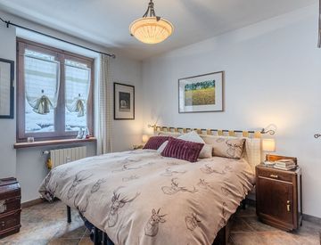 Completa la proprietà un comodo box auto con soppalco, ideale per il rimessaggio di sci, scarponi e attrezzatura sportiva.