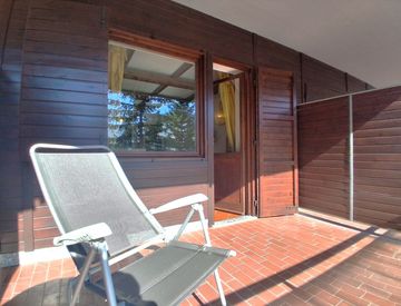 La camera da letto è un rifugio accogliente, con un letto matrimoniale e un letto a scomparsa, offrendo spazio e versatilità. Il bagno è completo di box doccia, mentre il terrazzo regala una vista panoramica mozzafiato su Sestriere e le maestose montagne circostanti, perfetto per godersi momenti di relax all'aria aperta.