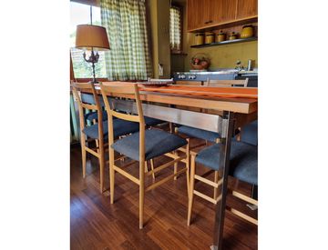 L'immobile è composto da ingresso, tre camere, bagno e zona giorno con angolo cottura con un totale di otto posti letto. La vista su Sestriere rende la casa molto luminosa.