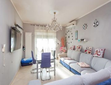 L'alloggio è composto da un ampio ingresso, due spaziose camere da letto, zona giorno con cucina a vista ed accesso al balcone, bagno finestrato con box doccia e ripostiglio.