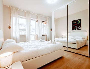 Renovated Studio located at 5 min walk to Piazza Castello, complete with bed, desk, chairs, lights and wardrobe. Kitchen equipped with pots, plates, glasses, cutlery, oven, induction hob. Bathroom with shower and washing machine. Large living area for 2-4 people complete with tables and chairs. Central heating, concierge service 8.30-12.30 / 14.30-18.30.