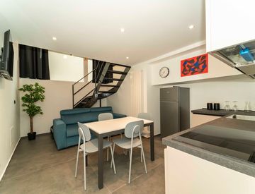 soppalco abitabile (h. 2,40 m) con zona notte matrimoniale e postazione studio.
