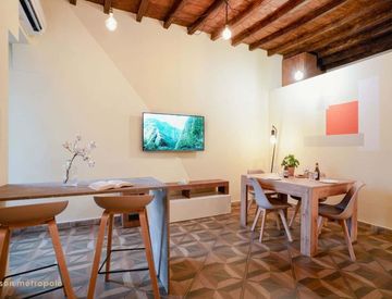 Situato al piano terra, con accesso comodo anche per persone con mobilità ridotta, l'appartamento colpisce per i soffitti alti con travi a vista e per l’atmosfera calda e curata nei dettagli.