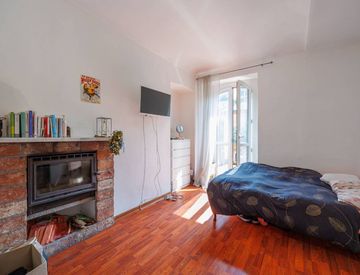 L'immobile gode di doppia esposizione ed è ed attualmente composto da tre camere da letto (in una delle quali è presente un camino con vetro funzionante), tutte con accesso tramite porta finestra al meraviglioso e grande terrazzo, cucina abitabile, bagno finestrato e balcone con terrazzino verso l'interno cortile.