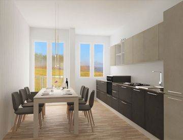 La sostenibilità è al centro di questo progetto: grazie alla realizzazione del cappotto interno e all'installazione di infissi a taglio termico, si riducono le emissioni di gas inquinanti. La pompa di calore elettrica assicura un riscaldamento e un raffreddamento efficienti, rendendo questo appartamento non solo elegante ma anche eco-friendly.