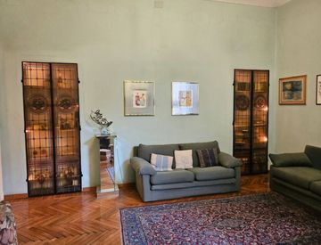 L'alloggio si trova al piano primo (alto) ed è composto da ampio ed elegante ingresso, studio, salone, tre camere, cucina e doppi servizi.