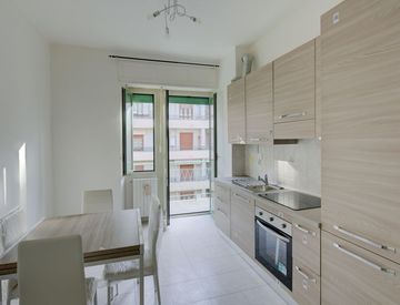 É un piccolo appartamento che aspetta solo di essere personalizzato: mancano i quadri e le tende e tutti quegli accessori che rendono unica ogni casa perché rispecchiano la personalità di chi la abita.