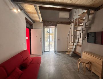 La camera da letto è situata su un soppalco, creando un'atmosfera intima e raffinata. L'appartamento è dotato di aria condizionata per garantire il massimo comfort in tutte le stagioni. Inoltre, nel cortile è presente un'area dedicata alle biciclette, rendendo facile e sicuro il parcheggio del proprio mezzo di trasporto.