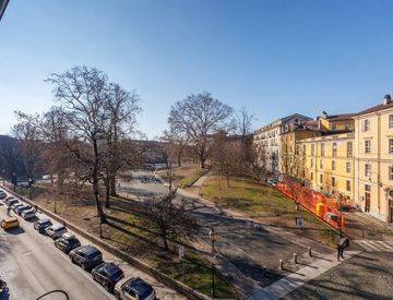 L’abitazione è caratterizzata da 3 locali di ampia metratura, luminosi e panoramici che si affacciano direttamente sui giardini della Piazza; sono facilmente adattabili alle proprie esigenze (zona living, studio, camere).