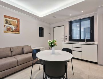 L'appartamento è dotato di: cucina a induzione, forno microonde, frigo basso con congelatore, smart tv, infissi con triplo vetro e porta blindata.