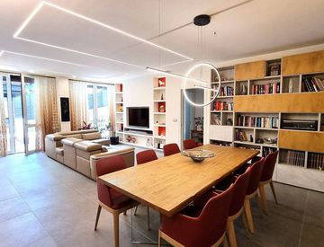 L'unità immobiliare con finiture di pregio si sviluppa con una metratura di mq.147 ed è composta da un ingresso che porta ad un ampio salone, cucina abitabile, tre camere, cabina armadi, doppi servizi, lavanderia e ripostiglio. Possibilità di lasciare parte dell'arredo acquistato da meno di un anno.
