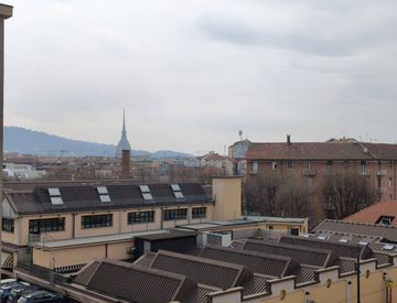 L’ingresso avviene direttamente sulla zona giorno dalla quale si accede all'ampio terrazzo con la vista sulla mole, asininistra dellingresso abbiamo la cucina con affaccio sull'interno. ssempre dalla zona giorna si accede ad un disimpegno che porta alla zona notte dove troviamo le due camere da letto e i due bagni.