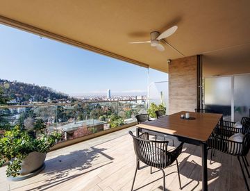 L'appartamento, luminoso e con finiture di pregio, è cosi composto: ingresso su salone con cucina a vista e ampia vetrata su Torino con accesso al primo terrazzo panoramico, due camere da letto di cui una master-room con bagno en suite e accesso diretto al terrazzo con veranda bioclimatica in vetro apribile, ulteriore bagno ospiti, lavanderia e cantina.