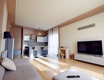 Varcata la soglia, l’ingresso si apre su un disimpegno che conduce alla zona living: un ambiente luminoso composto da sala con angolo cottura, perfetto per i tuoi momenti di relax o per cene conviviali. La zona notte offre due ampie camere da letto, spaziose e silenziose, e un bagno moderno rifinito con cura.