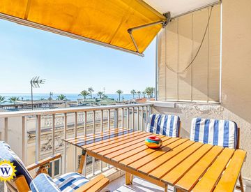 L'appartamento è composto da un ingresso, un soggiorno con angolo cottura (con possibilità di aprire la cucina), che si affaccia su un ampio balcone di 6 m² con una splendida vista mare e un ambiente tranquillo (edificio arretrato rispetto alla strada). Dispone inoltre di un WC indipendente, un bagno, una camera da letto con loggia esposta a nord e una seconda camera da letto, sempre a nord, con vista aperta. Buone condizioni generali.