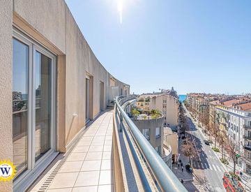Winter Immobilier presenta in esclusiva un appartamento raro situato all’ultimo piano della residenza Le Fenice, al 26 Boulevard Gambetta. Questo immobile si distingue per la splendida terrazza all’aperto, lo scorcio sul mare, la vista panoramica sulla città e la posizione privilegiata nel cuore di Nizza.