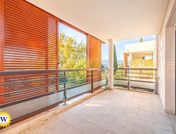 L'appartamento è composto da un ingresso, una toilette separata, un bagno, due camere da letto e un soggiorno con cucina aperta e attrezzata che si apre su un balcone e una terrazza esposti a sud e a ovest. Godrete di una vista ininterrotta sulle colline e sui giardini, in un ambiente tranquillo e in una residenza a misura d'uomo.