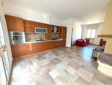 L'immobile, con ingresso autonomo dal pian terreno, si sviluppa sul primo piano ed è composto da luminoso soggiorno con cucina abitabile in open space, ampio ben 30 mq e con camino in marmo africano, balcone, camera da letto matrimoniale con balcone, seconda camera, comodo bagno con box doccia.