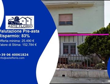 Riferimento: 4537083 Via Madonna degli Angeli, 10, 71011 Apricena Foggia Lotto: LOTTO UNICO Abitazione della superficie commerciale di mq. 169,76 circa, suddivisa in abitazione principale al piano terra della superficie lorda di mq. 134,40 circa, cortili chiusi di mq. 52,80 lordi circa e tavernetta di mq. 60,16 lordi circa. Classe energetica “E” Data di vendita: 06/05/2026 Offerta minima: € 25.490, 00 Valore di stima: € 152.784, 00 Studio di Fattibilità...
