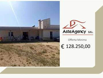 Descrizione sintetica: abitazione al solo piano terra, composta da cucina/soggiorno con caminetto, due camere da letto, due bagni, ripostiglio e vano scala per accesso al lastrico solare. Presenza di porticato esterno, forno e barbecue in muratura nel piazzale. Corte di pertinenza esclusiva di mq 534,00 e terreno agricolo di mq 4.442, 00.