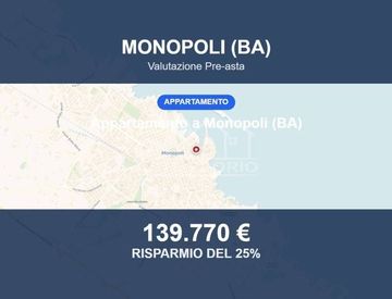 Appartamento in asta a Monopoli (BA) – Via Cimino, 52, 70043 Monopoli BA, Italia L'unità immobiliare si trova nel centro storico del comune di Monopoli (BA), in un fabbricato di tre piani fuori terra. L'immobile è indipendente e ha due accessi esclusivi, uno da Via Cimino n. 52-58 e l'altro da Vico Alba n. 12. Superficie e distribuzione interna L'abitazione si sviluppa su due livelli, piano terra e seminterrato, per una superficie catastale di 102...