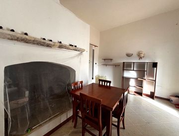 Il piccolo appartamento si trova all'interno di una masseria con un grande cortile interno, salendo una scala si entra nel soggiorno-cucina dove è presente un grande camino.