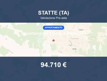 Appartamento in asta a Statte (TA) – Via Giuseppe Tartini 9 Appartamento situato a Statte (TA), in Via Giuseppe Tartini n. 9. L'immobile fa parte di un edificio residenziale. Superficie e distribuzione interna L'appartamento si sviluppa su una superficie di 174 mq ed è composto da sette vani catastali. Caratteristiche e dotazioni L'immobile è dotato di due ingressi carrabili e un ingresso pedonale. Completa la proprietà un garage pertinenziale di...