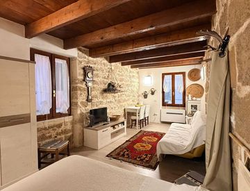 L' immobile è stato completamente ristrutturato, conserva elementi storici unici come l'antica porta d'ingresso e travi in legno a vista, che donano un'atmosfera calda e autentica.