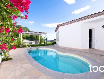 All’esterno, un’elegante piscina privata fa da protagonista, incorniciata da un’area relax perfetta per momenti di tranquillità e convivialità.
