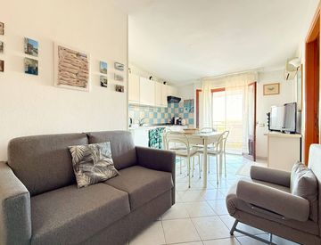 Soggiorno luminoso con cucina completa