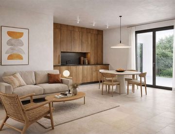 L'ingresso conduce a un'ampia e luminosa zona giorno open space con soggiorno e angolo cottura, progettata per offrire uno spazio accogliente e funzionale, perfetto sia per la quotidianità che per momenti di convivialità. La zona living si apre direttamente su una generosa area esterna privata di circa 50 mq, uno spazio versatile da vivere in ogni stagione: ideale come giardino, area relax, zona pranzo all'aperto o angolo verde personalizzato.