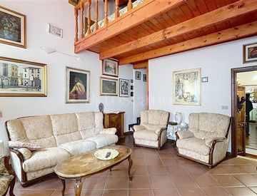 ampio soggiorno con volte alte, dove è stato ricavato un soppalco comodo e luminoso, perfetto per creare una seconda camera o uno studio.