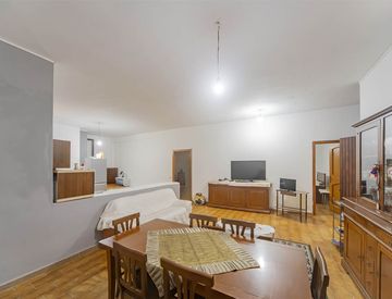 Grande zona giorno di circa di 50mq con angolo cottura, uno spazio luminoso e versatile, 2 Camere da letto da circa 20Mq e bagno.