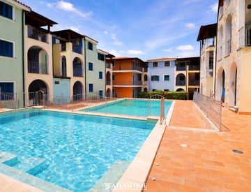 Luminoso attico con piscina e ampio giardino condominiale in elegante Residence a Valledoria, località La Muddizza (SS).