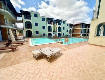 Proponiamo in Valledoria. loc. La Muddizza, grazioso appartamento, situato al piano terra di un complesso condominiale "Valledoria 2" con piscina e ampio giardino comune. Situato in una zona residenziale tranquilla, a pochi passi dal centro del paese e dalle principali attività commerciali, e vicinissimo alle spiagge. L'appartamento è composto da un soggiorno con angolo cottura, due camere da letto e un bagno, veranda coperta, ideale per godersi momenti...