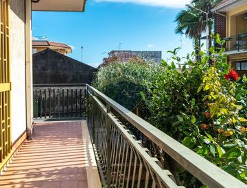 Tutti i vani sono serviti da un balcone a girare più un giardinetto di sei metri quadri che si affaccia sulla strada principale.