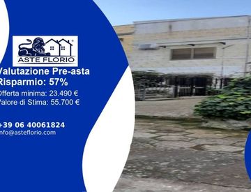 Riferimento; 4461849 Canicattini Bagni (SR), in C. da Bosco di Sopra n. 112 Piena proprietà dell’appartamento sito nel Comune di Canicattini Bagni (SR), in C. da Bosco di Sopra n. 112, censito al N. C. T. del Comune di Noto al fg. 13 p. lla 402/5 cat. A/3, classe 3°, 5,5 vani catastali Data di vendita 14/01/2026 Offerta minima 23.490, 00 € Valore perizia: 55.700, 00 € La data di vendita è molto vicina e pensi di non fare in tempo a partecipare? Rispondiamo...